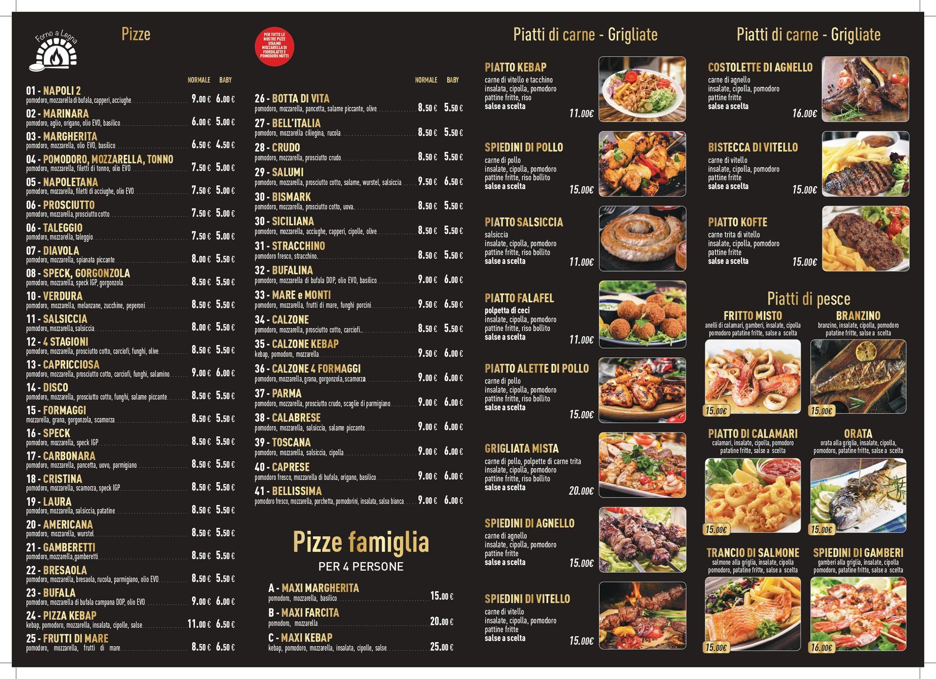 pizza famiglia per 4 persone, perfetta per pranzi in compagnia o serate tra amici. Dalla classica margherita alle combinazioni più creative, le nostre pizze sono preparate con ingredienti di qualità, mozzarella filante e impasto fragrante.